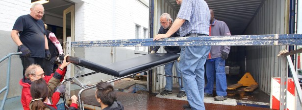 Helfer packen OP-Tische und Rollstühle für Mali | WAZ.de - Lesen Sie mehr auf: