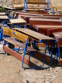 Die bisherige Unterstützung durch die Patenschaftsgelder war schon sehr erfolgreich, trotzdem benötigt die Schule dringend bessere Möbel. Für die 305 Schülerinnen gibt es 40 einfache Schulbänke aus Holz, die aber nach jedem Schuljahr entweder ganz defekt sind oder repariert werden müssen, da sie den Anforderungen nicht standhalten. In den Klassen stehen keine Schränke, wo Lehrer etwas wegschließen könnten, die Pulte sind ebenfalls einfache Holzplatten.. Die Kinder sitzen z.T. zu viert oder fünft in einer Bank, haben kaum Platz zum Schreiben, manche sitzen auch auf dem Boden. |